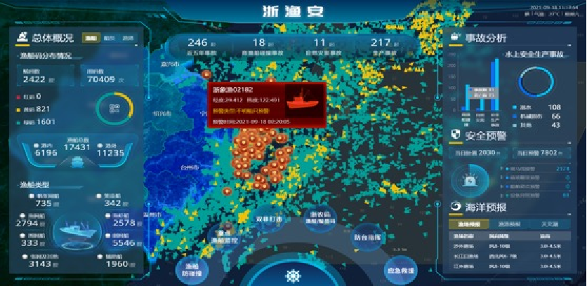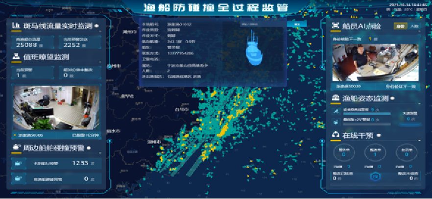 拉通全域数据,构建各种数据分析模型,进行深度数据挖掘分析,进展决策研判,提升渔船自主预警和风险防控能力。