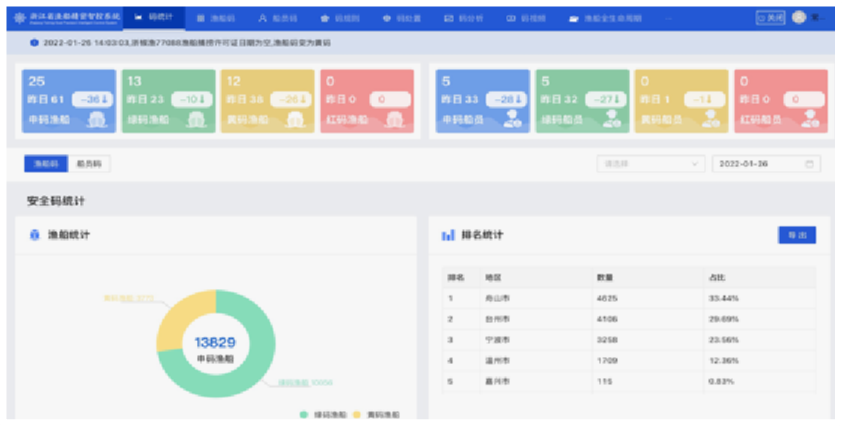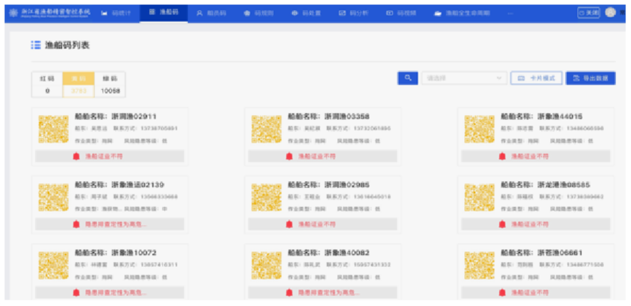 通过对渔船码、船员码的一体化管理,可视化、全局化、动态化的展现渔船和船员的全生命过程,挖掘渔船和船员生命周期价值