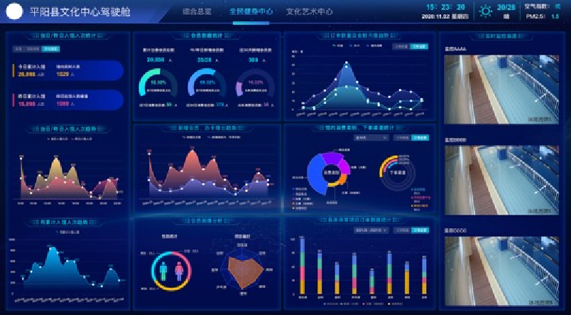 融合物联网平台、智慧业务平台等多维数据,构建全景驾驶舱,实现园区实时监控、综合管理、商业运营的可视化监测和统一指挥调度