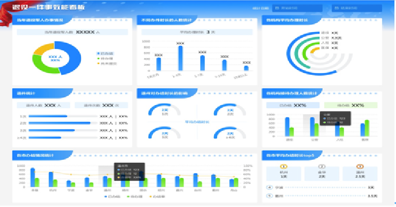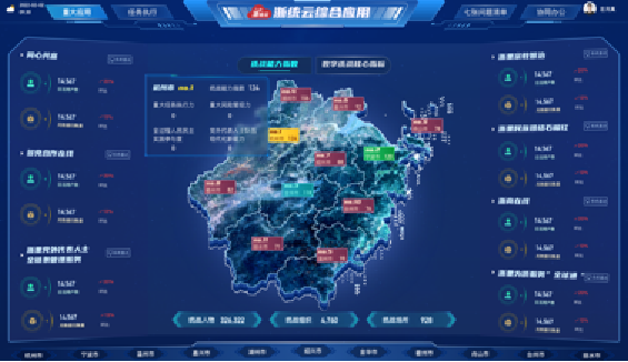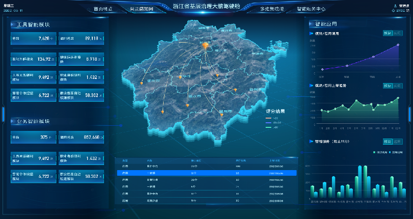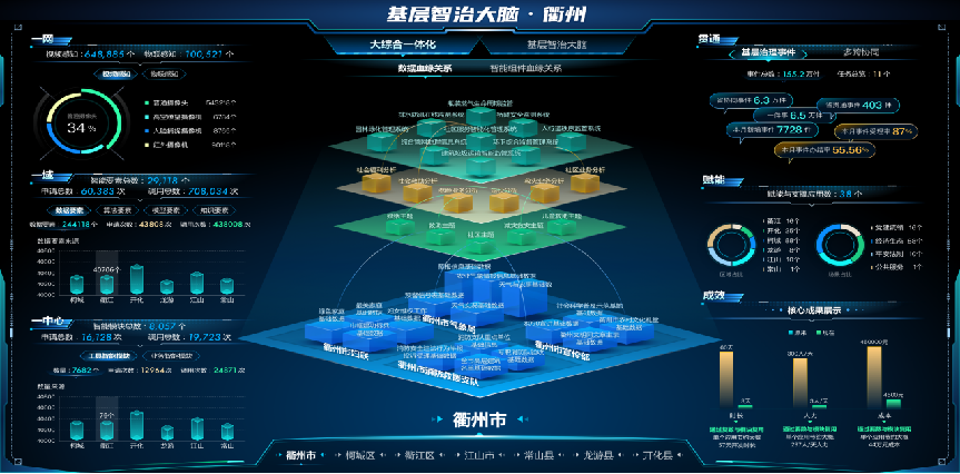 融合全市基层治理数据,围绕一网、一域、一中心、四跑道、三指数等进行深度挖掘和可视化展示,为政府重大多跨资源分配提供科学的数据决策依据