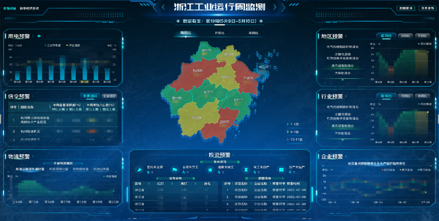基于工业用电、园区手机信令活跃度等数据,从用电量、同比增速、环比增速、产能利用率、活跃度等多维度监测工业运行情况